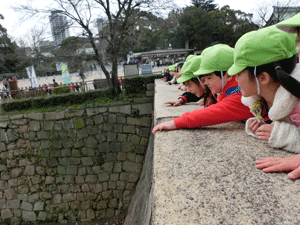 | いよいよ幼稚園生活最後の園外保育「大阪城」 電車に乗って大阪城に向かいました。 |