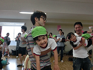親子ハンカチゲーム。
