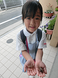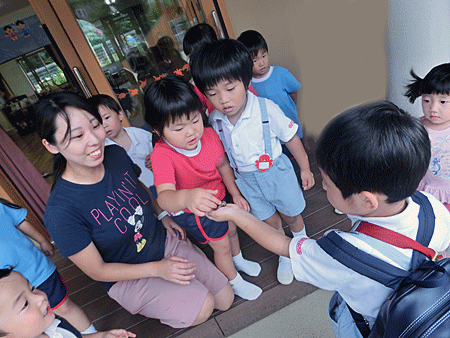 朝の登園時、何人もの子が拾った蝉の抜け殻を見せてくれます。