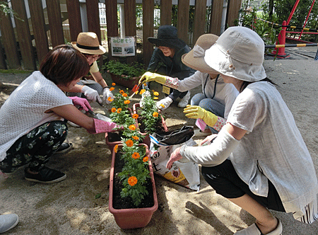 ガーデニング部の皆さんのおかげで園庭に綺麗な花が咲き、