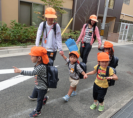 友達と手を繋ぎ、頑張って歩いていましたよ。