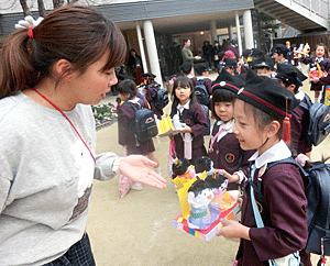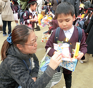 完成した雛人形を友達、先生、お家の方に見てもらい