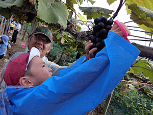 先生たちから、上手にぶどうを食べるコツを教えてもらい、