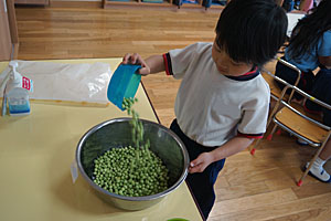 「すごっ!豆の中身が見える!3コ入ってる!」