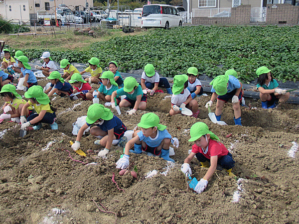 先週、年長組が伊丹にある久保農園に芋掘り遠足に行ってきました。