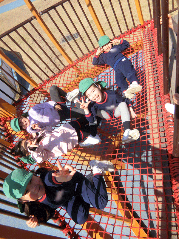 大きく高いジャングルジムでは、上まで登ろうと挑戦しました!