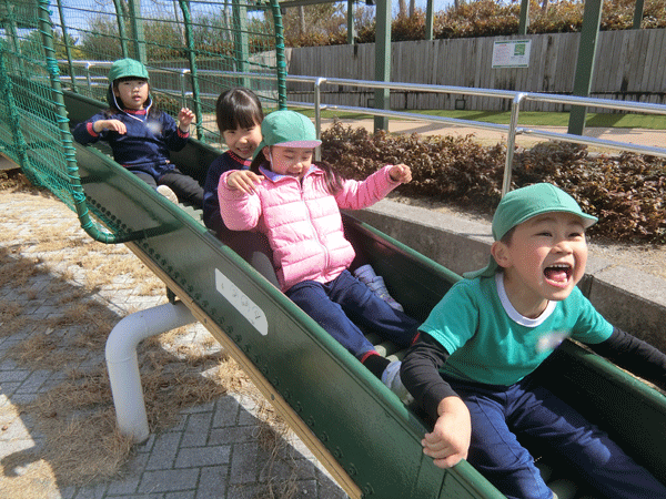 先生と一緒にスピードの出る滑り台を楽しみました!